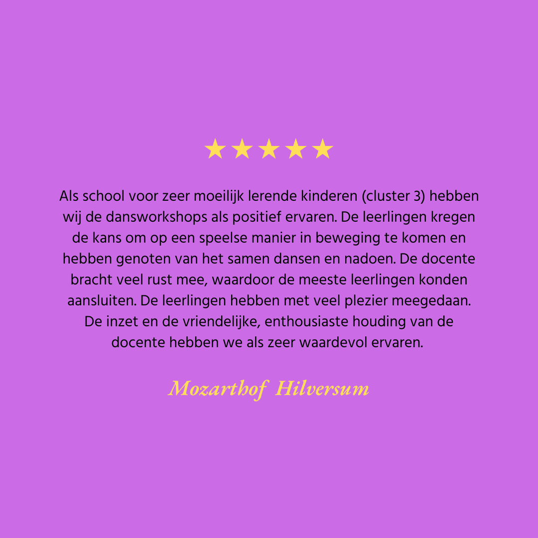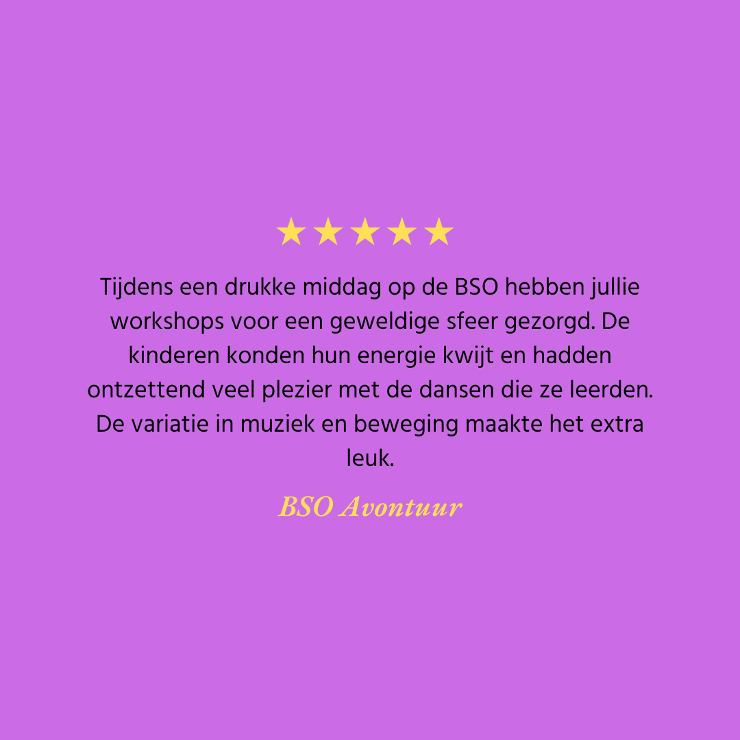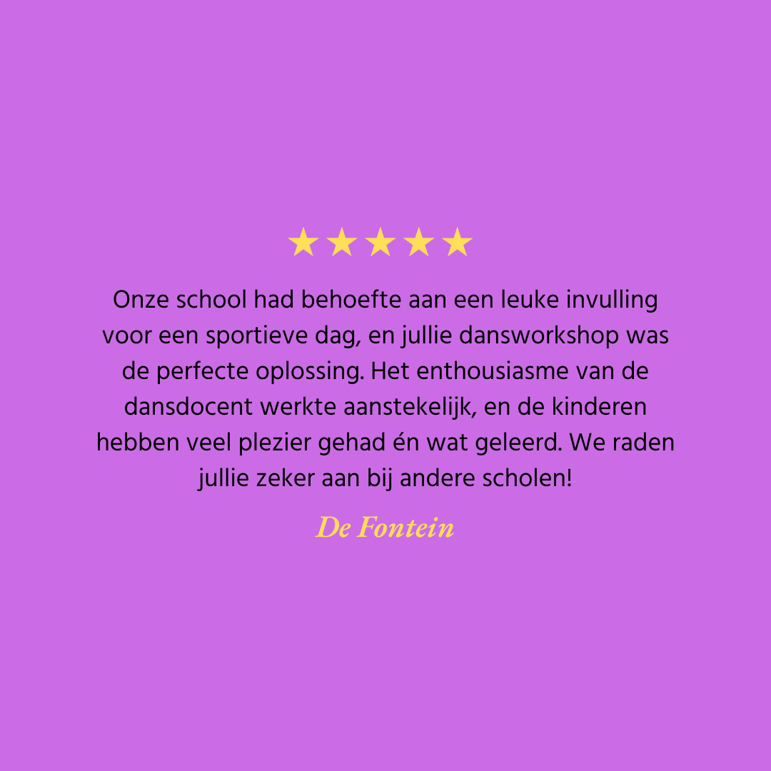 Sinds de start van Dansworkshops Nederland in januari 2024 hebben we al meer dan honderd inspirerende en energieke dansworkshops mogen verzorgen op scholen, bedrijven en evenementen door heel Nederland. Daarnaast hebben we ook workshops mogen geven in jeugdinrichtingen, opvanglocaties, kinderopvang en BSO’s, evenals in woonzorgcentra en locaties voor ouderenzorg. Waar mensen samenkomen, brengen wij beweging, energie en plezier.