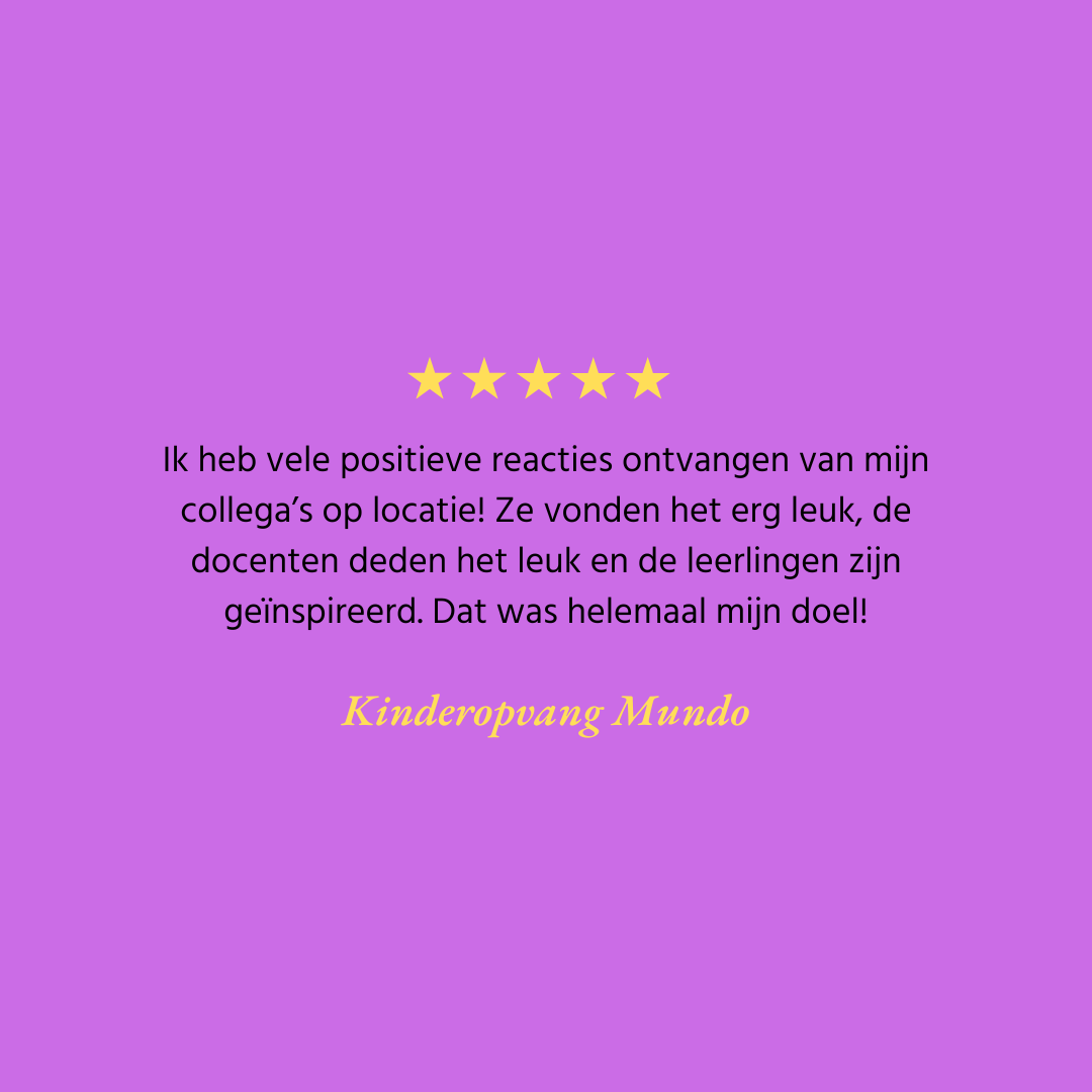 In korte tijd hebben we mooie reacties ontvangen van alle groepen waarmee we hebben gewerkt. Op deze pagina vind je een selectie van reviews die een goed beeld geven van de ervaringen van onze deelnemers.